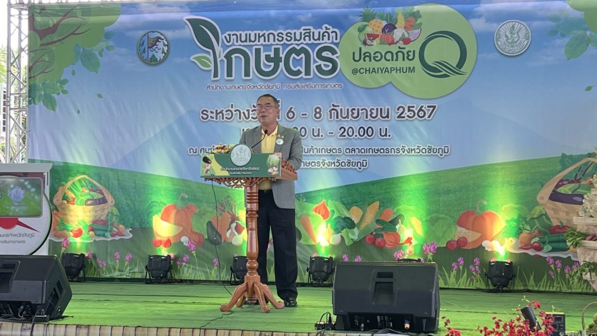 ( 7 ก.ย.67 ) ผู้สื่อข่าวรายงานว่า ขณะที่ จ.ชัยภูมิ นายอนันต์ นาคนิยม ผู้ว่าราชการ จ.ชัยภูมิ พร้อมด้วยคณะผู้บริหารสำนักงานเกษตรจังหวัดชัยภูมิ ทำพิธีเปิดงานมหกรรมสินค้าเกษตรปลอดภัย@Chaiyaphum ที่จะมีการจัดงานเป็นประจำทุกวันศุกร์ เสาร์ และวันอาทิตย์ ในครั้งแรกของช่วงสัปดาห์แรกของเดือนกันยายน ระหว่าง 6-8 ก.ย.นี้ ณ อาคารศูนย์เรียนรู้การบริหารจัดการสินค้าเกษตร ตลาดเกษตรกรจังหวัดชัยภูมิ ที่จากนี้ไปในตลอดช่วงวันหยุดท้ายสัปดาห์ศุกร์ เสาร์ และอาทิตย์ จะมีการจัดลานมหกรรมสินค้าเกษตรปลอดภัยไปในช่วงตลอดเดือนกันยายน 2567 เพื่อรองรับนักท่องเที่ยวที่เดินทางมาท่องเที่ยวใน จ.ชัยภูมิ ในช่วงวันหยุดสุดสัปดาห์ได้เข้ามาแวะหาจับจ่ายเลือกซื้อสินค้าขึ้นชื่อของ จ.ชัยภูมิ ในจุดนี้ได้อีกด้วย