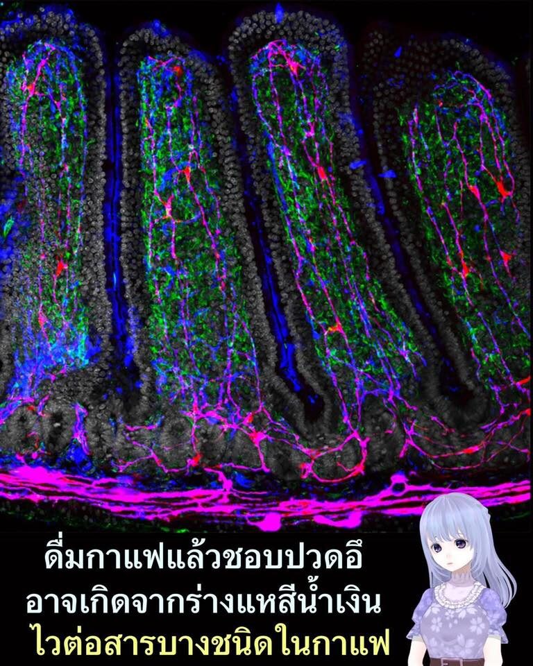 ทำไมดื่มกาแฟทีไร ปวดอึทุกที อาจเกิดจากเซลล์เส้นสีน้ำเงินในภาพ ไวต่อสาร CGA และ Melanordins ในกาแฟ