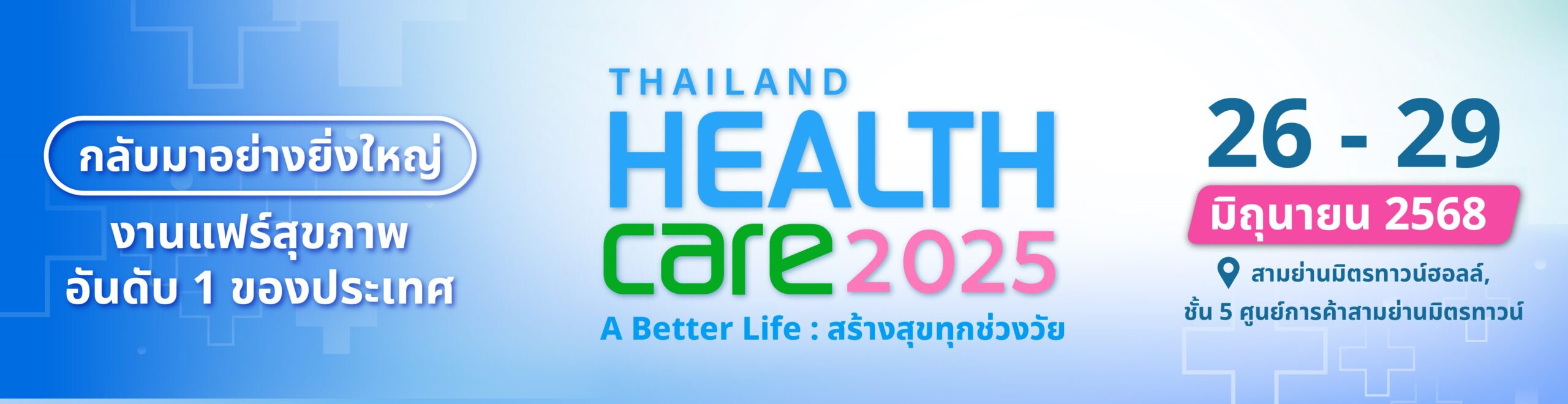 กลับมาอย่างยิ่งใหญ่อีกครั้ง สำหรับงานแฟร์สุขภาพอันดับ 1 ของประเทศ ที่ทุกคนรอคอย งาน Thailand Healthcare 2025 ภายใต้ธีม ‘A Better Life : สร้างสุขทุกช่วงวัย’ จัดโดย บริษัท มติชน จำกัด (มหาชน) พร้อมด้วยพันธมิตรสุขภาพ ทั้งภาครัฐและเอกชน