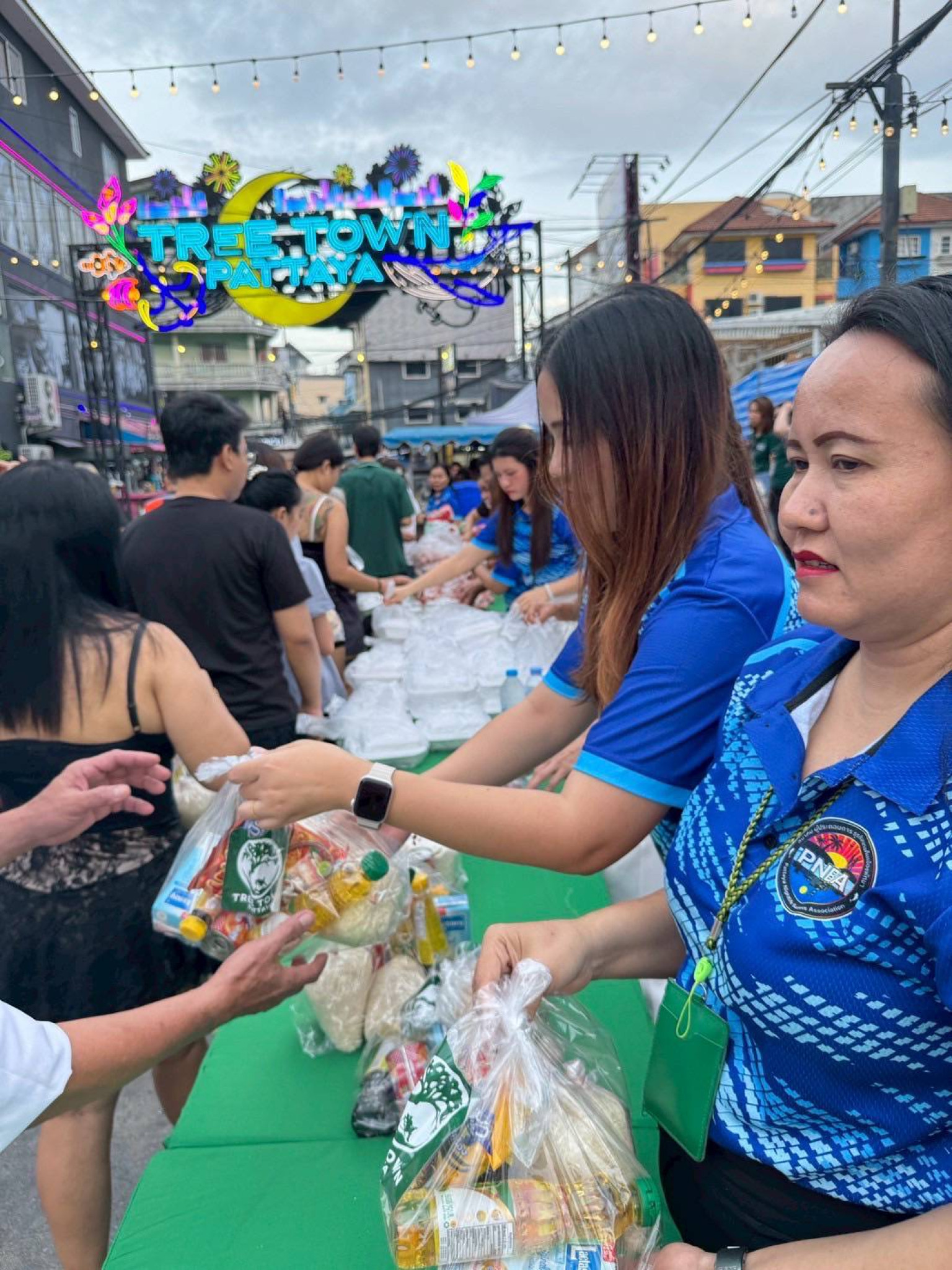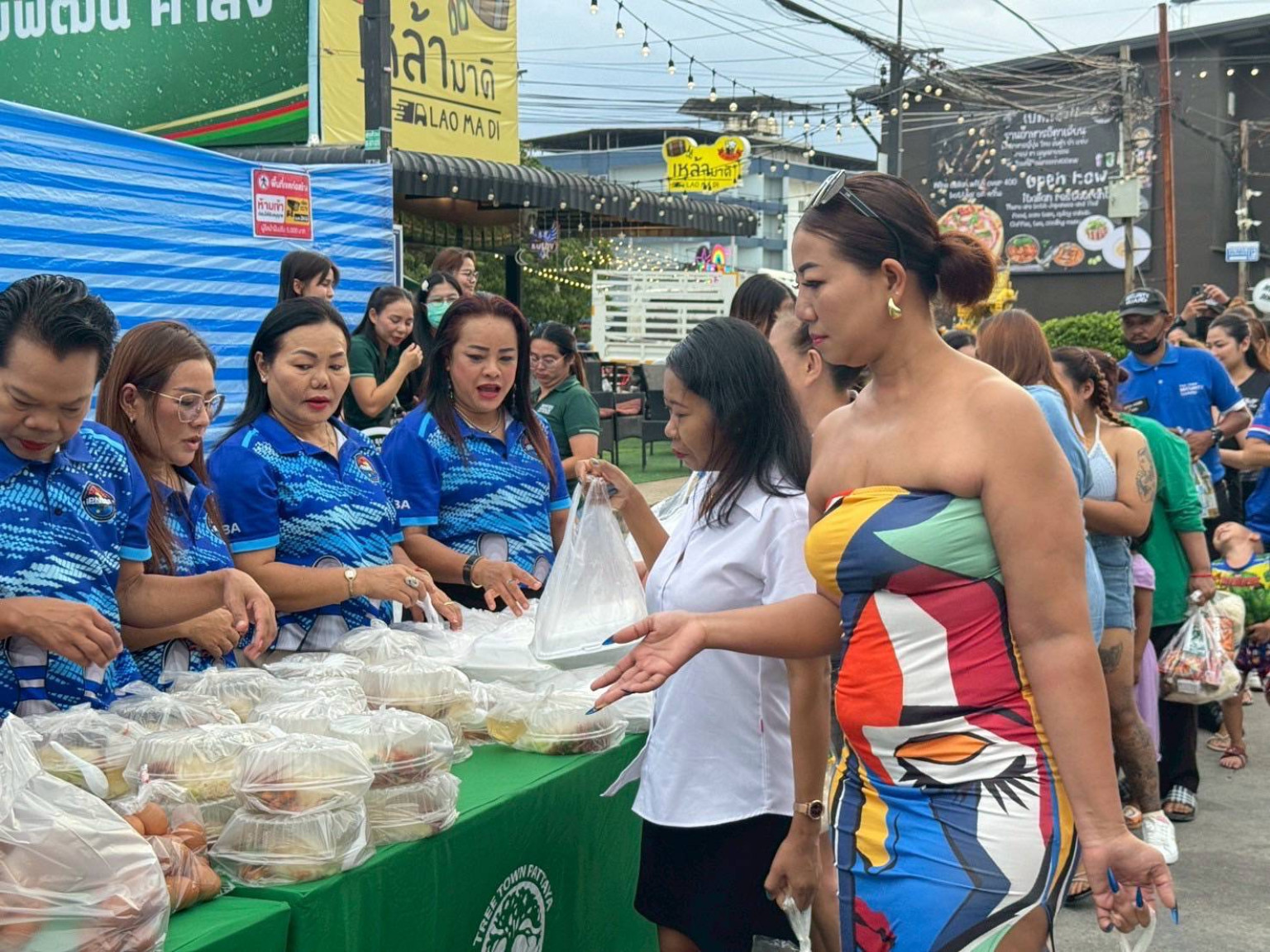 วันที่ 7 ก.ค.68 เวลา 18.00 น.ที่ตลาดทรีทาวน์ เมืองพัทยาสมาคมผู้ประกอบการธุรกิจกลางคืนเมืองพัทยา ร่วมกับ โครงการตลาดทรีทาวน์ ได้ร่วมกันแจกไข่ไก่ 2,000 ฟอง มาม่า 200 แพ็ค ข้าวสารอาหารแห้ง 200 ชุด ก๋วยเตี๋ยว 200 ชาม ข้าวกระเพรา ไก่ 100 กล่อง ข้าวยำไก่ทอด 50 กล่อง ให้กับพนักงาน และประชาชนในระแวกดังกล่าว เพื่อช่วยลดค่าใช้จ่าย ในสภาวะเศรษฐกิจที่ย่ำแย่ เนื่องจากยอดนักท่องเที่ยวลดลง ทำให้คนที่ทำงานกลางคืนต้องขาดรายได้ ในช่วงนี้ "เราจะไม่ทิ้งกัน" ลิซ่า เผย