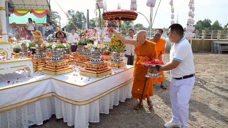 ชาวบ้านแห่ส่องทะเบียนรถ เจ้าคุณธงชัย เป็นประธานบรรจุดวงพระหทัย-ยกยอดพระเกตุมาลา องค์หลวงพ่อบ้านแหลม สูงที่สุดในโลก 12.30 เมตร