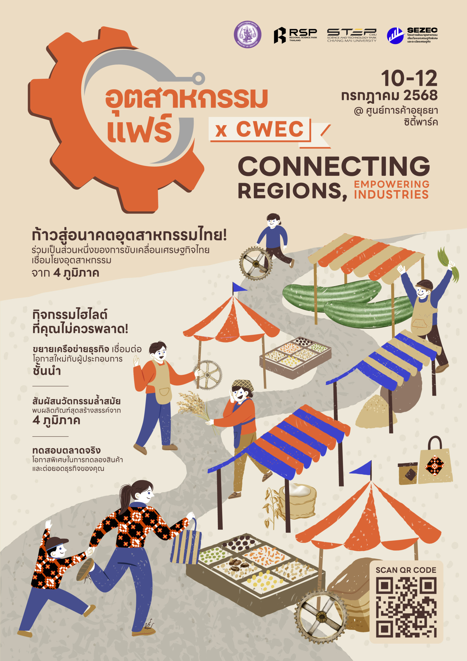 ซึ่งในครั้งนี้ “อุตสาหกรรมแฟร์ X CWEC” จะเกิดขึ้น ต่างประเทศ ณ ชั้น 1 (หน้าโลตัส) ศูนย์การค้าอยุธยาซิตี้พาร์ค จังหวัดพระนครศรีอยุธยา ในระหว่างวันที่ 10-12 กรกฎาคม 2568 โดยมี สำนักงานอุตสาหกรรมจังหวัดพระนครศรีอยุธยา นครปฐม สุพรรณบุรี และกาญจนบุรี ร่วมกับ อุทยานวิทยาศาสตร์ภูมิภาค ภาคตะวันออกเฉียงเหนือ 2 เป็นผู้รับผิดชอบหลักในการดำเนินงานดังกล่าว เพื่อสร้างการรับรู้และเปิดโอกาสให้ผู้ประกอบการในพื้นที่ได้แสดงศักยภาพ พร้อมสร้างโอกาสเชื่อมโยงเครือข่ายธุรกิจระหว่างภูมิภาคให้เติบโตอย่างยั่งยืน