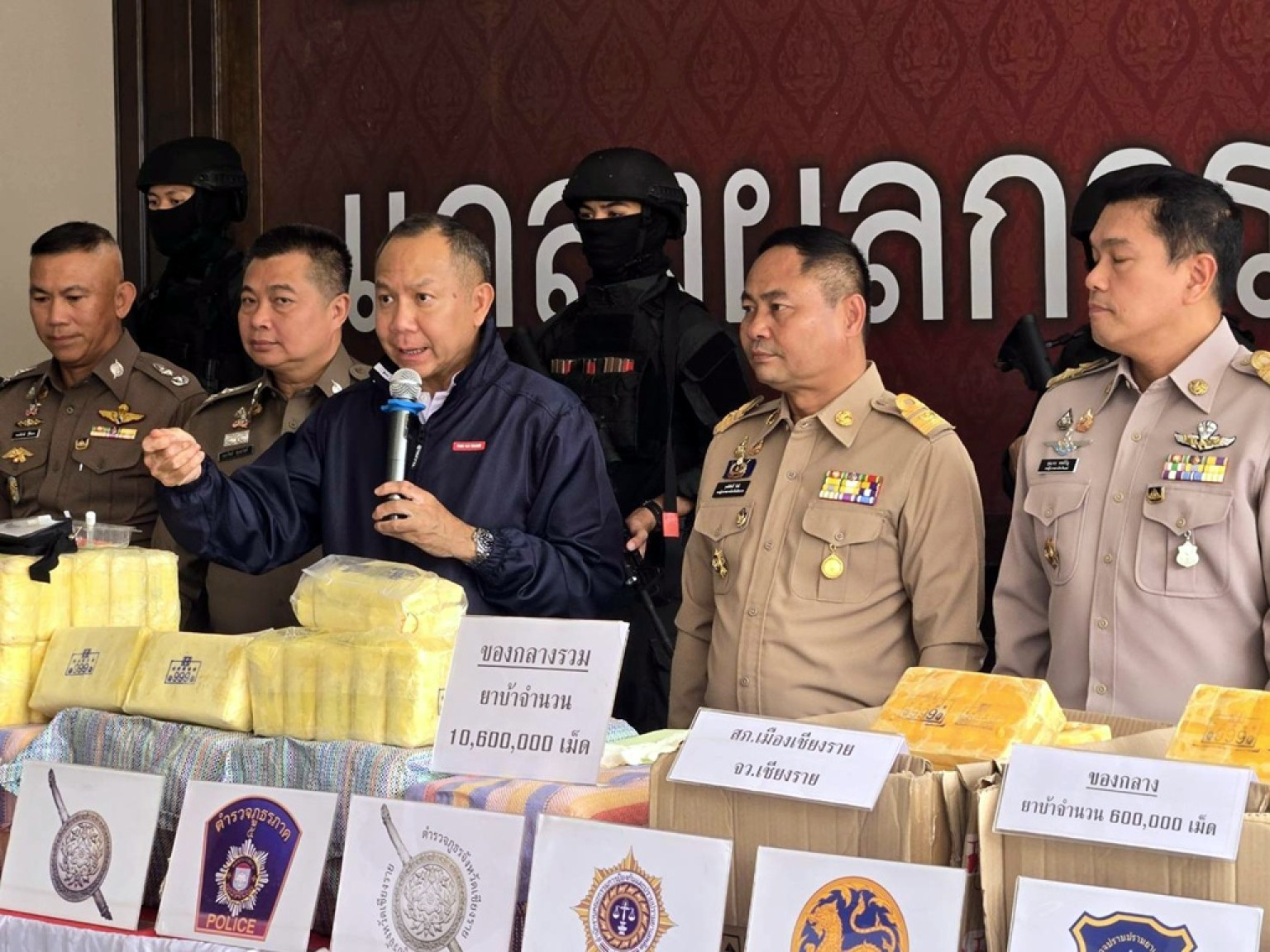 วันที่ 1 ก.ค.68 ที่สำนักงานตำรวจภูธร ภาค 5 จังหวัดเชียงใหม่ พล.ต.ท.กฤตธาพล ยี่สาคร ผู้บัญชาการตำรวจภูธรภาค 5 พร้อมด้วย รองผู้ว่าราชการจังหวัดแพร่และเชียงราย ทหาร ฝ่ายปกครองรวมถึงสำนักงาน ปปส.ภาค 5 ได้ร่วมกันแถลงผลการจับกุมคดียาเสพติดรายสำคัญ 2 คดีใหญ่ ยึดยาบ้ารวมกว่า 10.6 ล้านเม็ด