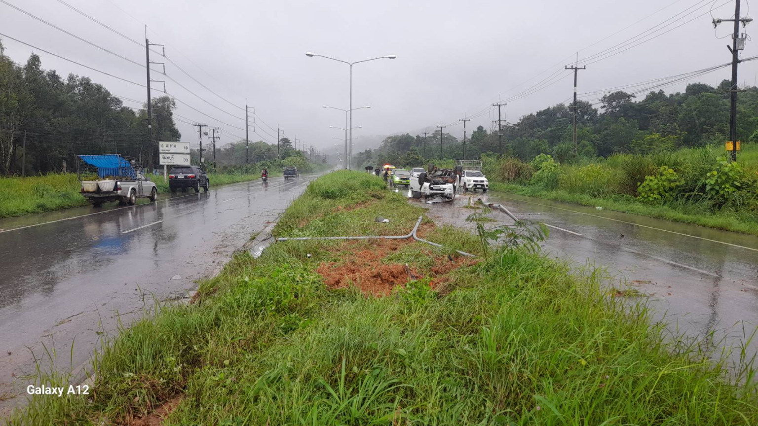 หนุ่มก่อสร้างชาวกัมพูชารอดตายไร้รอยขีดข่วนหลังขับรถไปหานายจ้าง ถนนลื่นเสียหลักพุ่งขึ้นเกาะกลางชนเสาไฟพลิกหงายท้องพังยับเชื่อพุทธคุณหลวงพ่อแพรปิดตาห้อยคอ ทำแคล้วคลาด
