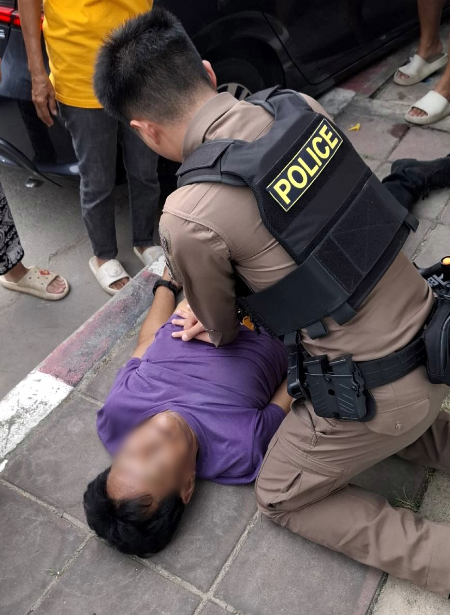 ชื่นชม ตร.สายตรวจ สภ.นาจอมเทียน ช่วยปั้มหัวใจชายขับเก๋งหมดสติฟื้นคืนชีพหลังเกิดอุบัติเหตุ