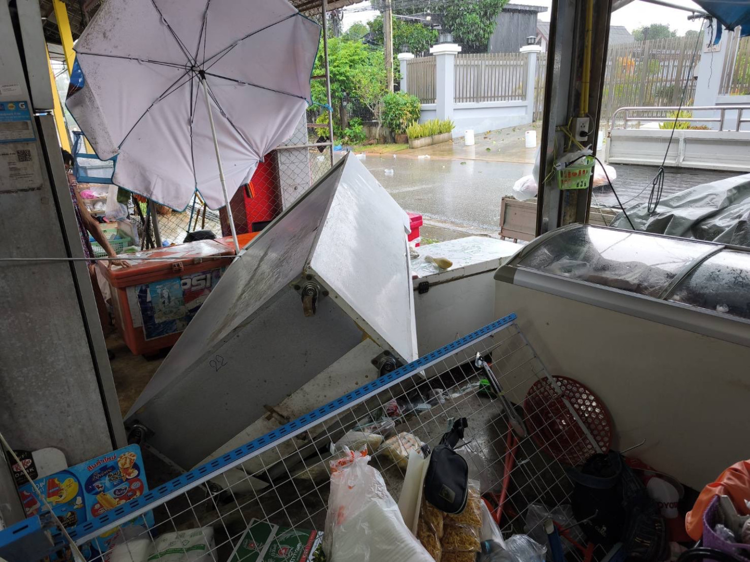 ทั้งนี้ นายสุทธิพงศ์ เนตรจรัส เจ้าของร้านขายสินค้าในหมู่บ้านกล่าวว่า จากเหตุการณ์ฝนตก ที่มาพร้อมกับพายุลมกรรโชกแรง ตามคลิปภาพที่เห็น ไม่เคยเกิดขึ้นมาก่อนในพื้นที่ ซึ่งตนเองอยู่อาศัยที่นี่มากกว่า 30 ปี ไม่เคยเจอ โดยผลพวงจากลมกรรโชกพัดทำให้ตู้แช่ขนาดใหญ่ล้มคว่ำลง ตลอดจนข้าวของเครื่องใช้ ตลอดจนสินค้าในร้าน ถูกแรงลมพัดกรรโชก ได้รับความเสียหาย