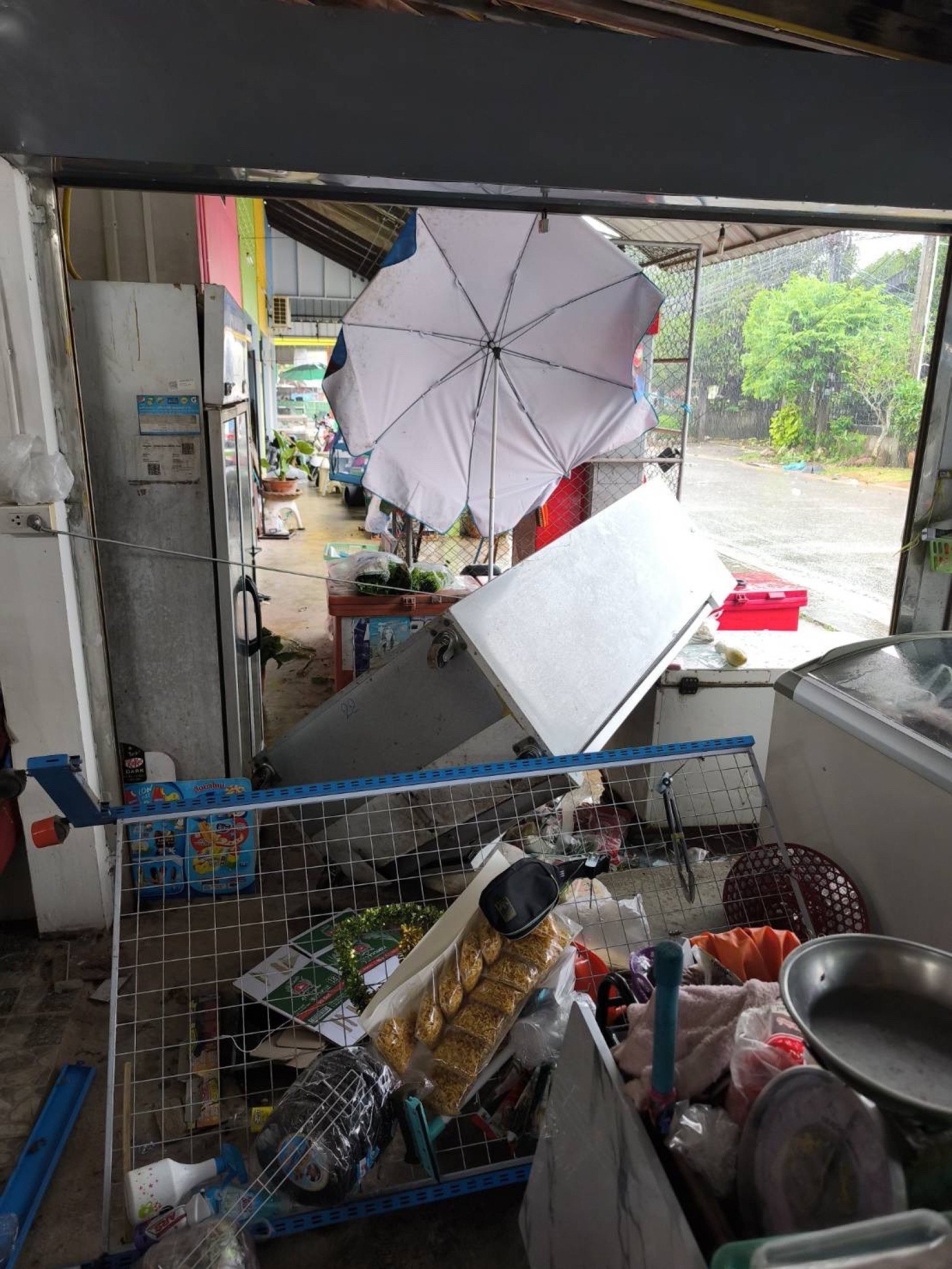 ระทึก!!นาทีพายุซัดวูบเดียวทำบ้านเรือนร้านค้าเสียหายหลายสิบหลังคาเรือน