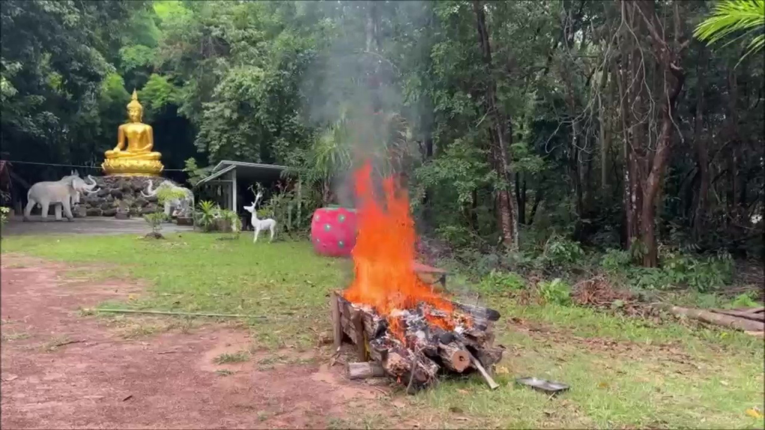 วัดป่าแห่งนี้ที่ผ่านมาไม่เอาธรรมวินัย เชื่อผีเชื่อสาง เลยทำให้เจ้าอาวาสอยู่ที่วัดแห่งนี้ไม่รู้เป็นไงมรณภาพไปหลายรูปแล้ว 4-5 รูปไม่มีพระรูปไหนอยู่ได้ เจ้าที่มีทุกที่ วัดแห่งนี้ก็มี อาตมามาอยู่ที่วัดแห่งนี้ ไม่เชื่อเรื่องผีเรื่องสาง อาตมาเชื่อในธรรมวินัย ส่วนที่ว่าแม่สไบเงินสไบทองมาเข้าฝันอาตมาไม่ใช่แต่อย่างใด ไม่อยากให้ญาติโยมงมงายจึงทำพิธีเผาฯ เหลือไม้แค่ขอนไม้เท่านั้น