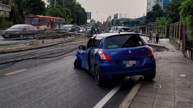 นศ.หนุ่ม นามสกุลดัง ขับเก๋งวูบ พุ่งชนเสาไฟฟ้าโค่น15ต้น รถพัง4คัน