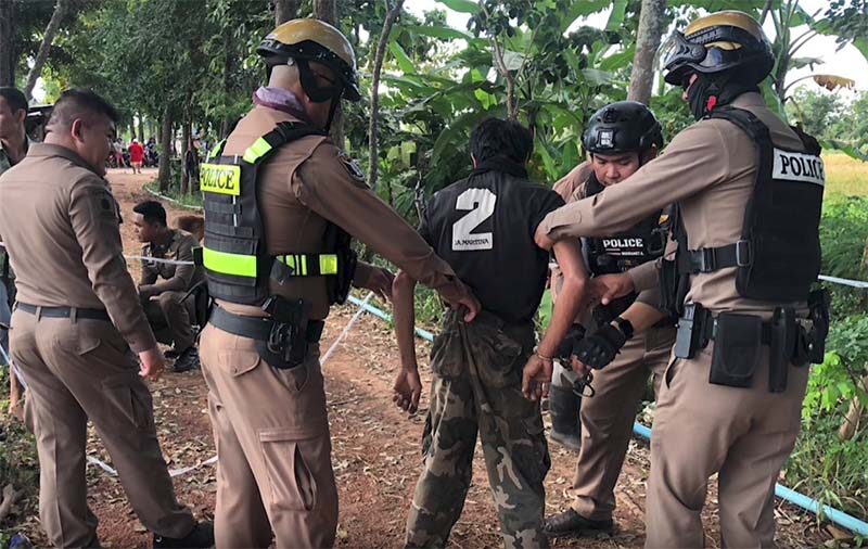 ส่วนผู้ก่อเหตุคือนายธวัชชัย ผิวขำ อายุ 49 ปี หลังก่อเหตุได้เดินหลบหนีลงไปในทุ่งนา เจ้าหน้าที่ชุดสืบสวนจึงลงพื้นที่ไล่ล่า กระทั่งพบตัวอยู่ห่างจากจุดเกิดเหตุประมาณ 500 เมตร จึงเข้าควบคุมตัวไว้ได้