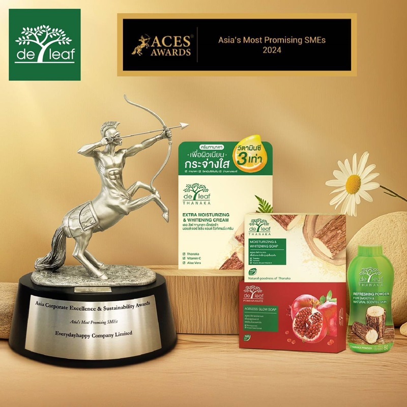 De Leaf แบรนด์สกินแคร์ที่มีจุดเริ่มต้นจากแป้งทานาคากระป๋องเขียวและสบู่สมุนไพรทานาคาที่เป็นที่นิยมและขายดี สู่ผู้นำด้านนวัตกรรมที่เต็มไปด้วยความมุ่งมั่นในอุตสาหกรรมผลิตภัณฑ์ดูแลผิวของไทย คุณศุภชัย จูพานิชย์ เจ้าของแบรนด์ "De Leaf" ที่ก่อตั้งขึ้นในปี 2010 ภายใต้บริษัท มีความสุขทุกวัน จำกัด ด้วยความเชื่อหลักที่ว่าส่วนผสมจากธรรมชาติที่แท้จริงสามารถดูแลสุขภาพผิวให้สวยและแข็งแรงได้ โดยช่วงหลายปีที่ผ่านมา บริษัทได้เติบโตและพัฒนาอย่างก้าวกระโดด ขยายการส่งออกไปยังประเทศต่างๆ เช่น เมียนมา ลาว สหรัฐอเมริกา เม็กซิโก มาเลเซีย และจีน และมีแผนที่จะเติบโตในระดับนานาชาติต่อไปในปีนี้ ทำให้แบรนด์และผลิตภัณฑ์คุณภาพของไทยเป็นที่รู้จักไปทั่วโลก และล่าสุดคว้ารางวัล ‘Asia's Most Promising SMEs’ จาก Asia Corporate Excellence & Sustainability Awards (ACES AWARDS 2024) ซึ่งเป็นหนึ่งในสุดยอดรางวัลเกียรติยศที่มอบให้กับผู้นำองค์กร บริษัทและแบรนด์ชั้นนำต่างๆ ในเอเชีย เพื่อเป็นการถ่ายทอดเรื่องราวความสำเร็จรวมทั้งวิสัยทัศน์ผู้นำจากเอเชียสู่การรับรู้ในระดับโลก ตอกย้ำความสำเร็จและคุณภาพในผลิตภัณฑ์ทุกชิ้นจาก De Leaf