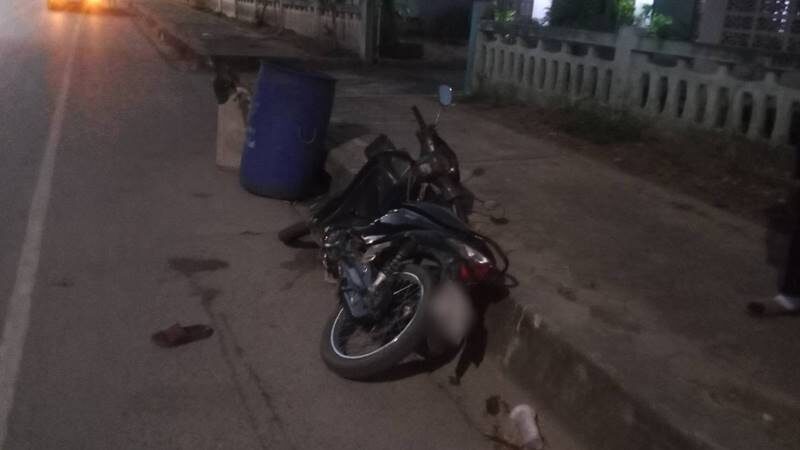 รถจยย.ของผู้เสียชีวิตและผู้บาดเจ็บ ที่ถูกตำรวจคลั่งถีบล้มขณะขับผ่าน