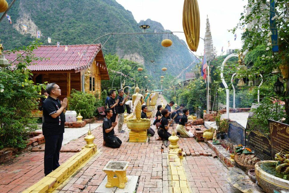 จุดหมายต่อมาคือ “วัดสินไชยาราม” ณ เมืองเฟือง ที่โอบล้อมด้วยภูเขาหินสูงตระหง่าน โดยวัดแห่งนี้มีการสร้างวัดไปพร้อมกับการดูแลอนุรักษ์ป่าไม้ ฟื้นฟูสภาพป่าไม้ เป็น 1 ในพุทธอุทยาน ที่สำคัญใน สปป.ลาว และเป็นสถานที่เรียนรู้พุทธศาสนาและปฏิบัติธรรม รวมถึงเป็นจุดหมายของสายมูทั้งหลายที่มักจะมาขอพรจากพญานาคเพราะมีความเชื่อว่าที่วัดสินไชยารามแห่งนี้เชื่อมต่อกับคำชะโนดในประเทศไทย ก่อนเดินทางต่อไปยังเมืองหลวงเวียงจันทน์ และเพลิดเพลินกับอาหารมื้อค่ำที่ร้านหมูกระทะฮิตติดลมบนของคนรักปิ้งย่างที่ร้าน “ซิ้นดาดโป๊ยเซียน” ที่คัดสรรมาแต่เนื้อคุณภาพดีมาเสิร์ฟให้ถึงโต๊ะ ก่อนเข้าเช็กอินกันที่ “โรงแรมเลอธาตุหลวงดอร์ บูทีคโฮเทล” (Le Thatluang D'oR Boutique Hotel) โรงแรมดีไซน์ สวยและตกแต่งในสไตล์ลักซูรี่ มีพื้นที่กว้างขวาง เหมาะกับการพักผ่อนเป็นอย่างยิ่ง