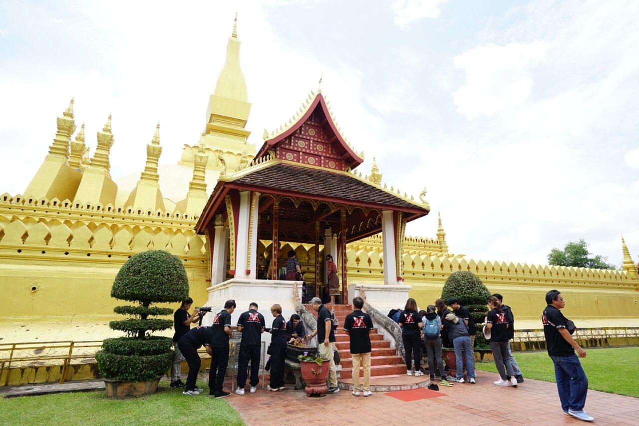 วันสุดท้ายของทริป หลังจากเช็กเอ๊าท์ที่โรงแรมแล้ว จึงได้แวะไปสักการะ “พระธาตุหลวงเวียงจันทน์” (Pha That Luang Vientiane) หรือ พระเจดีย์โลกะจุฬามณี ศาสนสถานที่สำคัญที่สุดแห่งหนึ่งของสปป.ลาว องค์พระธาตุหลวงเวียงจันทน์นั้น มีลักษณะสถาปัตยกรรมที่โดดเด่น โดยองค์พระธาตุมีความสูง 45 เมตร มีลักษณะคล้ายดอกบัวตูม ซึ่งเป็นสัญลักษณ์คำสอนของพระพุทธเจ้า ด้านในบรรจุพระบรมสารีริกธาตุที่อัญเชิญมาจากประเทศศรีลังกา