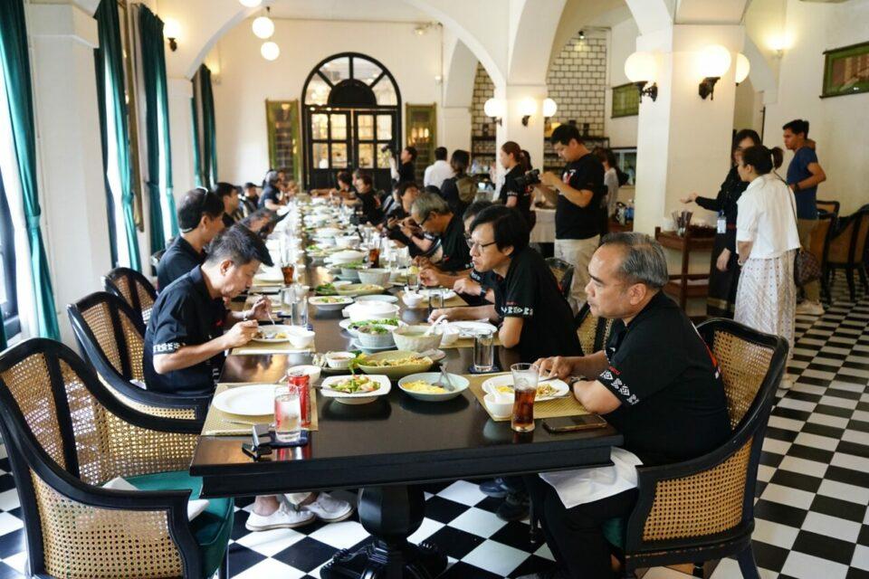ก่อนแวะรับประทานอาหารเที่ยงกันที่ “ร้านอาหารลาวเดิม” (LaoDerm Restaurant) ร้านอาหารลาวแท้ ๆ ที่มีเมนูอาหารลาวแบบดั้งเดิมที่ดีที่สุดของเวียงจันทน์ เลือกใช้วัตถุดิบในท้องถิ่นที่สดใหม่สะอาด และยังคงสูตรดั้งเดิมที่สืบทอดมายาวนาน ที่ทุกคนในทริปติดใจในรสชาติอาหารที่กลมกล่อม แซ่บนำ ที่มาพร้อมกับการนำเสนอการจัดวางอาหารที่สวยงาม และแวะจิบกาแฟกันที่คาเฟ่สไตล์มินิมอลของเมืองวียงจันทน์ Au8ust The Living Factory กันอิ่มหนำสำราญ