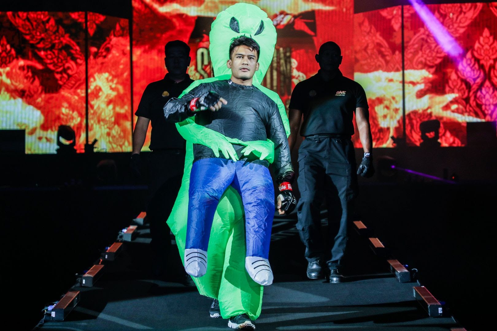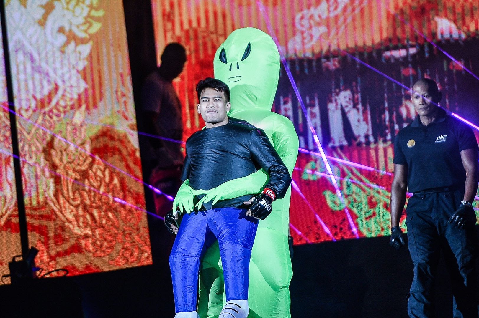 (3 มี.ค.63) นักสู้ที่มีไอเดียเปิดตัวโดดเด่นที่สุดคนหนึ่งใน วัน แชมเปียนชิพ ต้องยกให้ "ครูตอง" ชนนภัทร วิรัชชัย ล่าสุดเขาใช้ไอเดียเปิดตัวด้วยเอเลียน ในศึก ONE: KING OF THE JUNGLE จึงทำให้แฟนๆ สงสัยว่า ครูตอง ต้องการสื่ออะไร