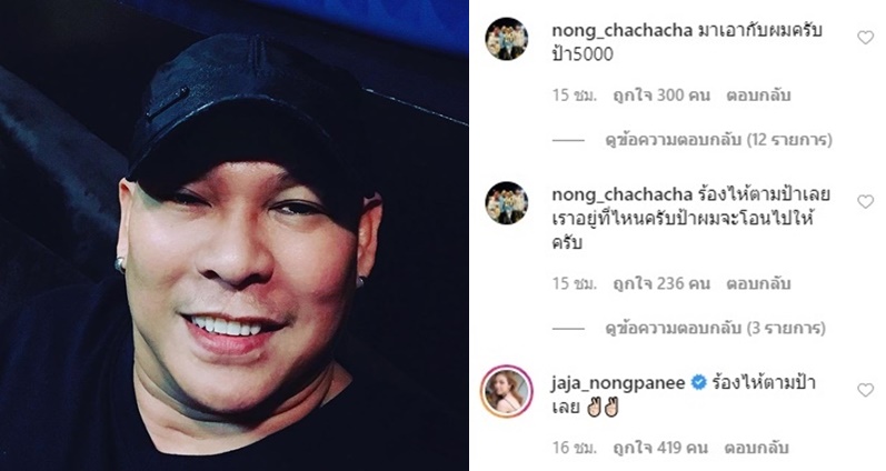 ขณะที่ตลกดัง อย่างโหน่ง ชะชะช่า เห็นป้าแล้ว ถึงกับประกาศตามหาป้า โดยบอกว่า มาเอากับผมครับป้า5000 ร้องไห้ตามป้าเลย เราอยู่ที่ไหนครับป้า ผมจะโอนไปให้ครับ