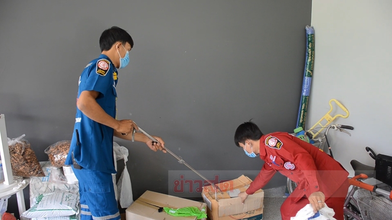เจ้าหน้าที่เข้าตรวจสอบบริเวณโรงจอดรถหลังรับแจ้ง งูเข้าบ้าน