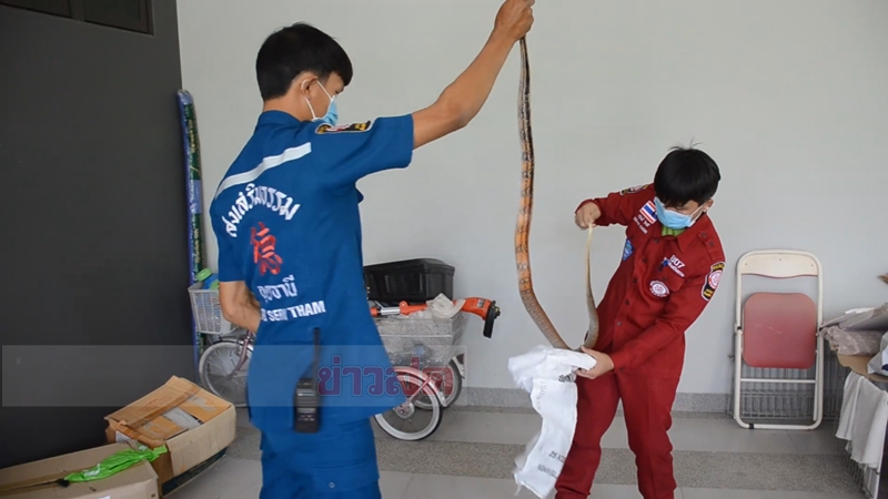 เมื่อเวลา 10.30 น. วันที่ 6 พ.ค. มูลนิธิส่งสริมธรรมแห่งอุดรธานี รับแจ้งเหตุพบงูเลื้อยเข้ามาภายในบ้านพักของหมู่บ้านจัดสรรแห่งหนึ่ง ต.หมากแข้ง อ.เมือง จ.อุดรธานี หลังรับแจ้งจึดรุดไปตรวจสอบและให้ความช่วยเหลือ