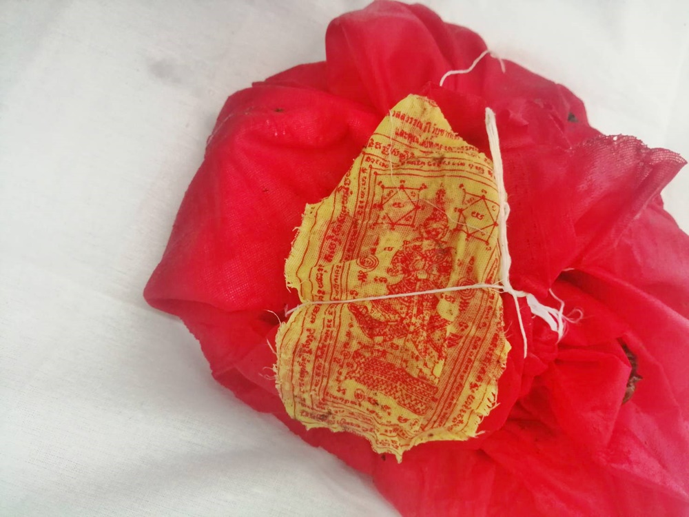 สร้างความมึนงงและสงสัยให้กับชาวบ้านเป็นอย่างมาก หน่วยกู้ภัยจึงตัดสินใจโทรศัพท์สอบถาม พระครูปลัดวิชาญธรรมโชโค วัดป่าโคกปราสาท ต.หนองปล่อง อ.ชำนิ จ.บุรีรัมย์ ซึ่งมีความรู้ด้านนี้ โดยพระครูปลัดพูดไว้เป็น 2 ข้อ คือ 1.เป็นห่อสะกดวิญญาณคนที่ตายจากการถูกฆาตกรรม คนที่ก่อเหตุเขาใช้มะนาว และผ้ายันต์ปิดธาตุทวารไม่ให้ออกไปไหน เมื่อจิตออกไปไหนไม่ได้ ก็จะไปออกมาบอกคนอื่นว่า ตนถูกใครกระทำได้