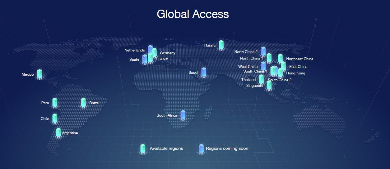 จุดเด่นของ Huawei Public Cloud คือมีศูนย์ข้อมูลตั้งอยู่ที่ระเบียงเศรษฐกิจพิเศษภาคตะวันออก หรือ EEC พื้นที่นี้ครอบคลุม 3 จังหวัดคือฉะเชิงเทรา, ชลบุรี และระยอง ทำให้เชื่อมต่อข้อมูลในประเทศด้วยความเร็วสูงและต้นทุนที่ถูกกว่าการเชื่อมต่อโดยตรงจากต่างประเทศ นอกจากนี้หัวเว่ยยังมีศูนย์ข้อมูลในอีกหลายประเทศ เช่น สิงคโปร์, รัสเซีย, เนเธอร์แลนด์, จีน, แอฟริกาใต้ เพื่อเชื่อมต่อข้อมูลให้เข้าถึงรวดเร็วจากทั่วโลก