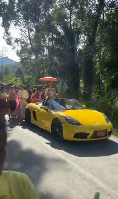 แต่ที่สร้างความฮือฮาคงเป็นขบวนแห่นาค เมื่อจัดเต็มด้วยรถสปอร์ตหรูปอร์เช่สีเหลืองเปิดประทุนป้ายแดง ให้นาคจีจี้ปีโป้นั่งมา พร้อมขบวนแห่ยาวเหยียดสุดอลังการ