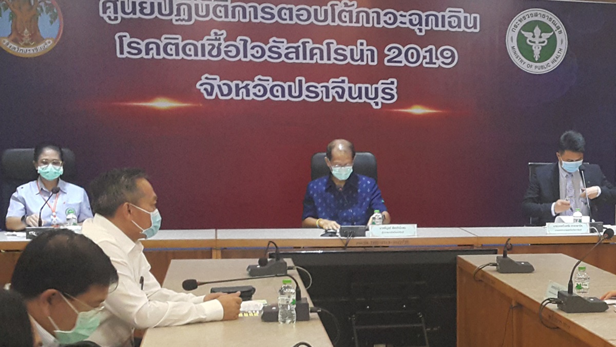 วันที่ 3 เม.ย. ที่ศูนย์ปฏิบัติการตอบโต้ภาวะฉุกเฉินโรคติดเชื้อไวรัสโคโรน่า 2019 ศาลากลางจังหวัดปราจีนบุรี นายพิบูลย หัตถกิจโกศล ผวจ.ปราจีนบุรี พร้อมด้วย นพ.โชคชัย สาครพานิช นายแพทย์สาธารณสุข จ.ปราจีนบุรี และ พญ.โศรยา ธรรมรักษ์ ผอ.รพ.เจ้าพระยาอภัยภูเบศร ร่วมแถลงสถานการณ์โรคติดเชื้อไวรัสโคโรน่า 2019 ( COVID-19)