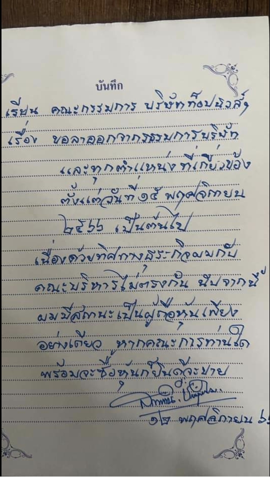 “นับตั้งแต่วันที่ 15 พ.ย.66 เป็นต้นไป เนื่องด้วยทิศทางธุรกิจของผมกับคณะบริหารไม่ตรงกัน และไม่มีส่วนเกี่ยวข้องกับ TOP NEWS อย่างใด นับจากนี้ผมมีสถานะเป็นผู้ถือหุ้นเพียงอย่างเดียว หากคณะกรรมการท่านใดพร้อมจะซื้อหุ้นก็ยืนดีจะขาย”