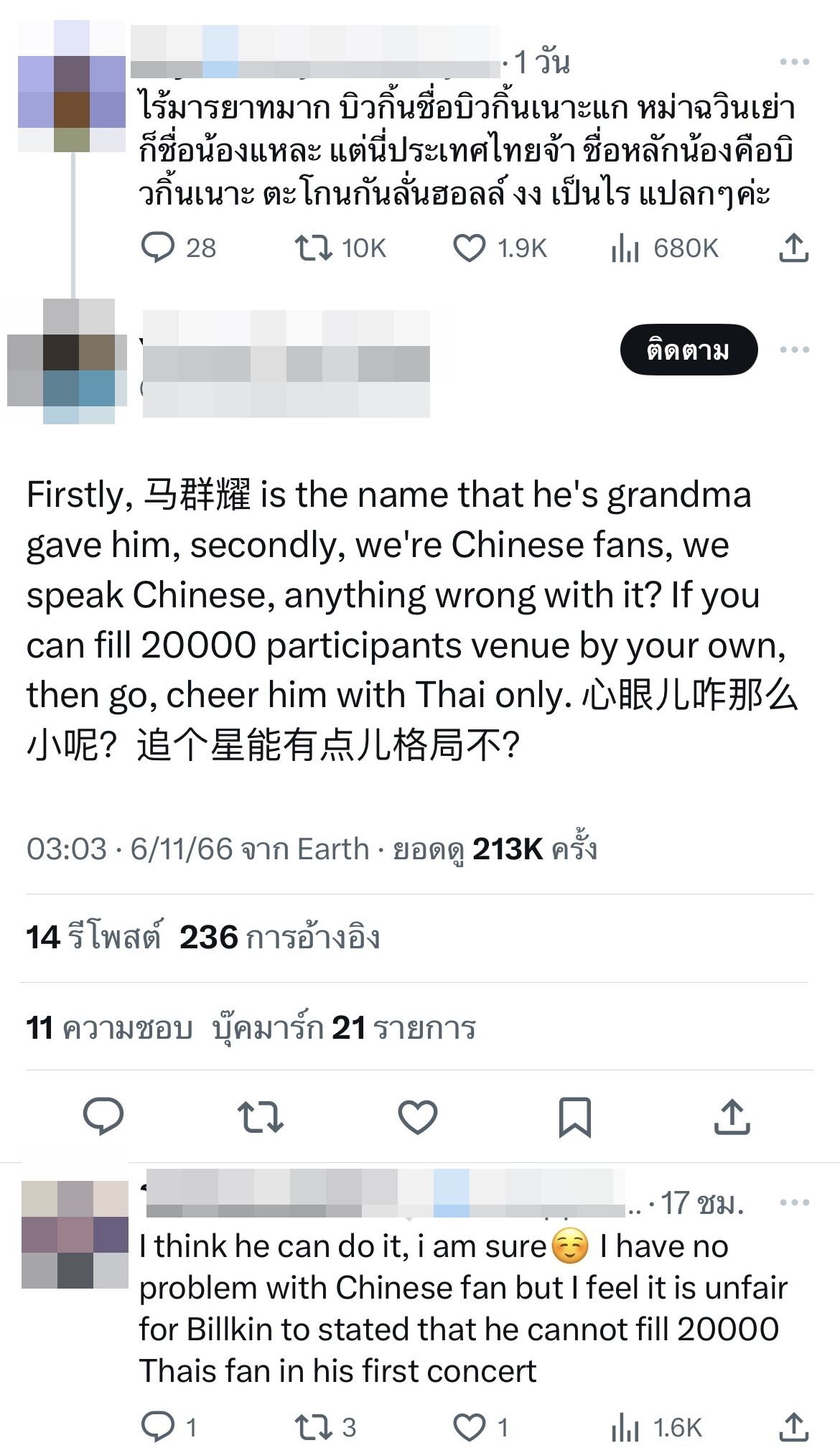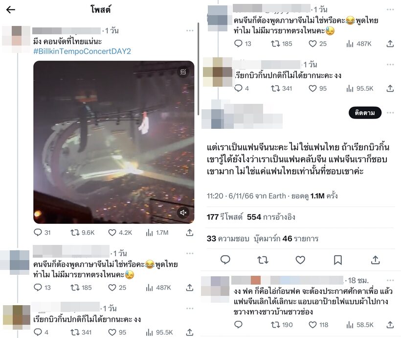 แฟนคลับชาวไทย ไม่ขอทน หลังแฟนคลับชาวจีน ของ "บิวกิ้น" โพสต์ ไม่มีพวกฉัน 20,000 ที่นั่งก็ไม่เต็ม หลังเกิด Fans War เถียงเรื่องมารยาทในคอนเสิร์ต