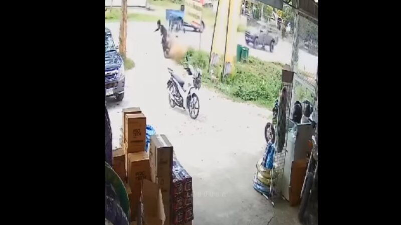 วันที่ 9 มี.ค.2566 ในโซเชียลมีการแชร์ต่อ คลิปภาพอุบัติเหตุที่กล้องวงจรปิดจับภาพ จยย.คันหนึ่งขับขี่ตามรถกระบะคันหนึ่ง ก่อนที่รถจยย. เสียหลักพุ่งลงข้างทาง ตัวคนขี่ร่างกระเด็นพุ่งตีลังกาทะลุป้ายโฆษณาไวนิล จากนั้นคลิปก็ได้ภาพตัดมาอีกมุม