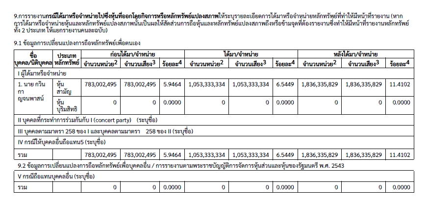 ทั้งนี้ภายหลังการได้มาดังกล่าวมีหุ้นจำนวน 1,836,335,829 หุ้น คิดเป็น 11.4102% ของสิทธิออกเสียงทั้งหมดของกิจการและขึ้นแท่นผู้ถือหุ้นใหญ่อันดับ 2