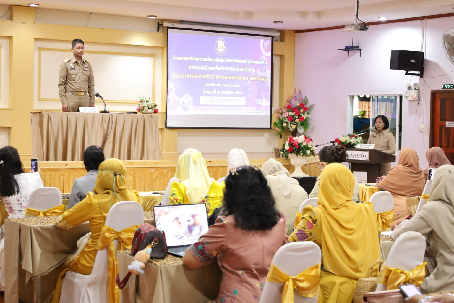 วันที่ (21 ก.ค.68) ที่ห้องประชุมสตารินทร์รีสอร์ท อำเภอเมือง จังหวัดสตูล นายศักระ กปิลกาญจน์ ผู้ว่าราชการจังหวัดสตูล มอบหมายให้ นายคณิต คงช่วย รองผู้ว่าราชการจังหวัดสตูล เป็นประธานในพิธีเปิดการสัมมนาสร้างเครือข่ายการแนะแนวอาชีพ ประจำปีงบประมาณ 2568 เพื่อพัฒนาขยายเครือข่าย การแนะแนวอาชีพบุคลากรด้านการศึกษา โดยมี นางสุภาวดี พานิชย์ จัดหางานจังหวัดสตูล พร้อมด้วยหัวหน้าส่วนราชการ และผู้ร่วมสัมมนา ร่วมกิจกรรมอย่างพร้อมเพรียง