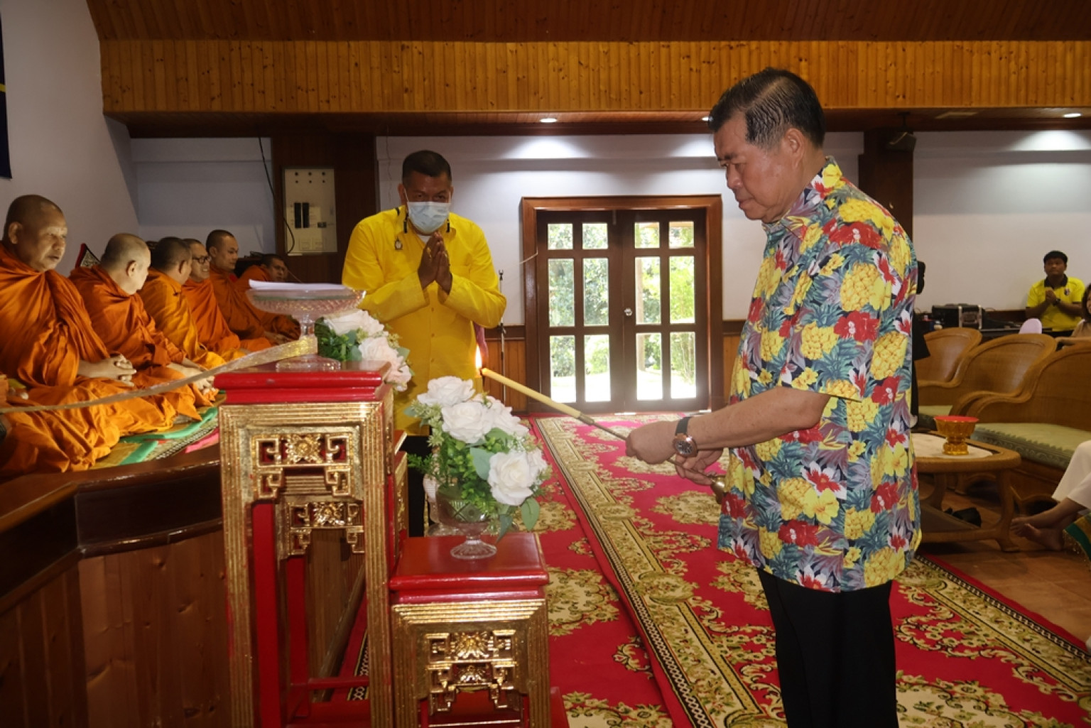 บรรยากาศภายในงานเป็นไปอย่างเรียบง่าย เปี่ยมด้วยมิตรภาพและความอบอุ่น มีการมอบกระเช้าและของที่ระลึกเพื่อแสดงความยินดี รวมถึงพิธีทำบุญถวายภัตตาหารพระสงฆ์ เพื่อความเป็นสิริมงคลในโอกาสพิเศษ โดยมีพระเทพวชิรสุตาภรณ์ เจ้าคณะจังหวัดสงขลา และเจ้าอาวาสวัดโคกสมานคุณ พระอารามหลวง เป็นประธานในพิธีสงฆ์