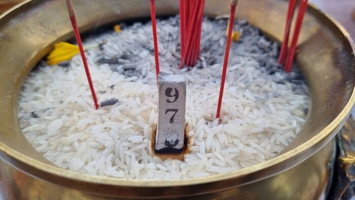 และต่างตะลึง เนื่องจากช่วงระยะเวลาเพียงเสี้ยววินาที เกิดตัวเลขปรากฏบนธูปเสี่ยงทายเปลี่ยน หรือ เคลื่อน ขณะตัวเลขเริ่มให้เห็นครบ 3 ตัว 9 7 5 ทันใดเกิดลมพัด ตัวเลขที่ปรากฏกลับเปลี่ยน เป็น 9 7 0 ผู้ร่วมพิธีและประชาชนต่างนำโทรศัพท์มือถือขึ้นมาเก็บภาพ นำไปเสี่ยงโชค ลุ้นรางวัลสลากกินแบ่งรัฐบาลงวดวันที่ 1 ก.ค.68