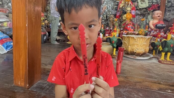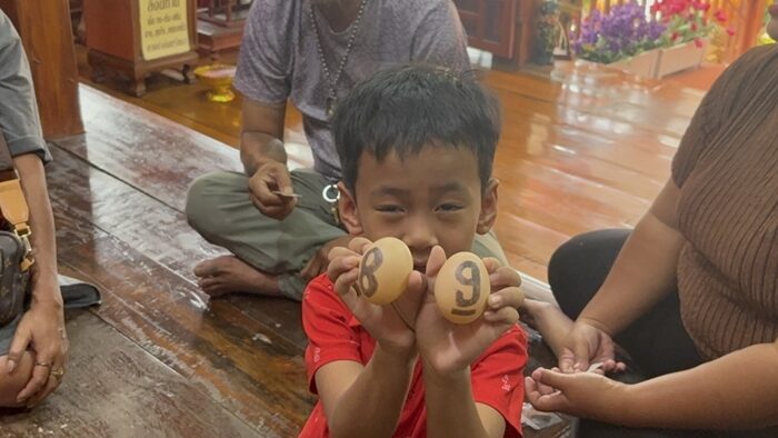 พบ น้องมังกร วัย 5 ขวบ ที่เดินทางมากับครอบครัวจาก จ.สุพรรณบุรี ได้ทำการล้วงไหขอตัวเลขเสี่ยงทาย ไอ้ไข่ วัดสนามชัย ได้ตัวเลข 89 เสี่ยงเซียมซี ได้เลข 810 ให้ไปเสี่ยงดวงเสี่ยงดวงกันต่อไป