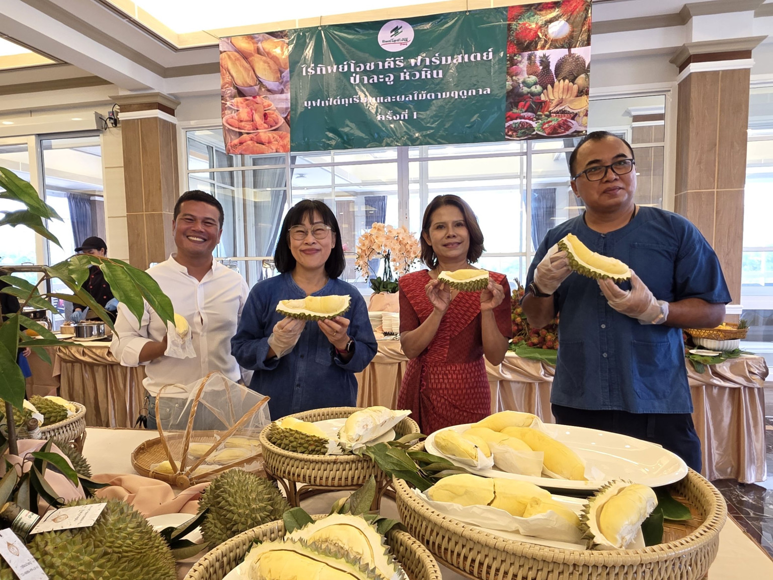 นักท่องเที่ยวแห่ลิ้มรส ทุเรียนเกรดพรีเมี่ยมในงาน “บุฟเฟ่ต์ทุเรียนป่าละอู” ครั้งแรก! ที่ไร่ทิพย์โอชาคีรี ฟาร์มสเตย์ หัวหิน การันตีความปลอดภัย ใช้ปุ๋ยชีวภาพ “หมักนมวัวผสมไข่ไก่” ดูแลต้นทุเรียน