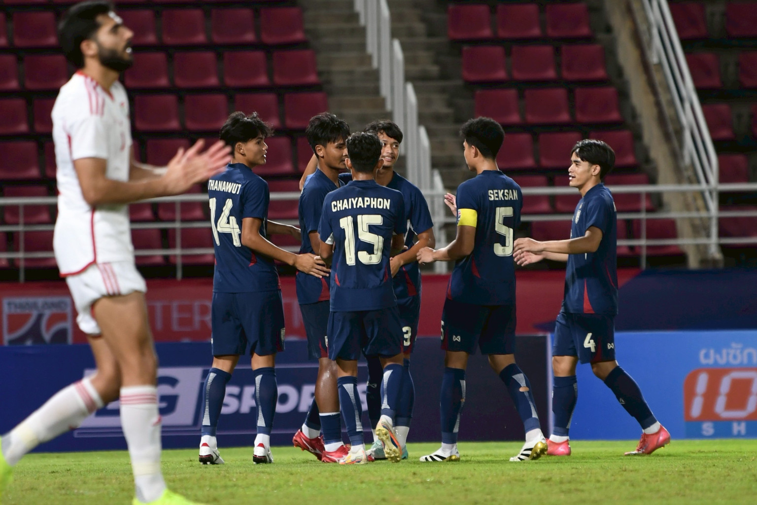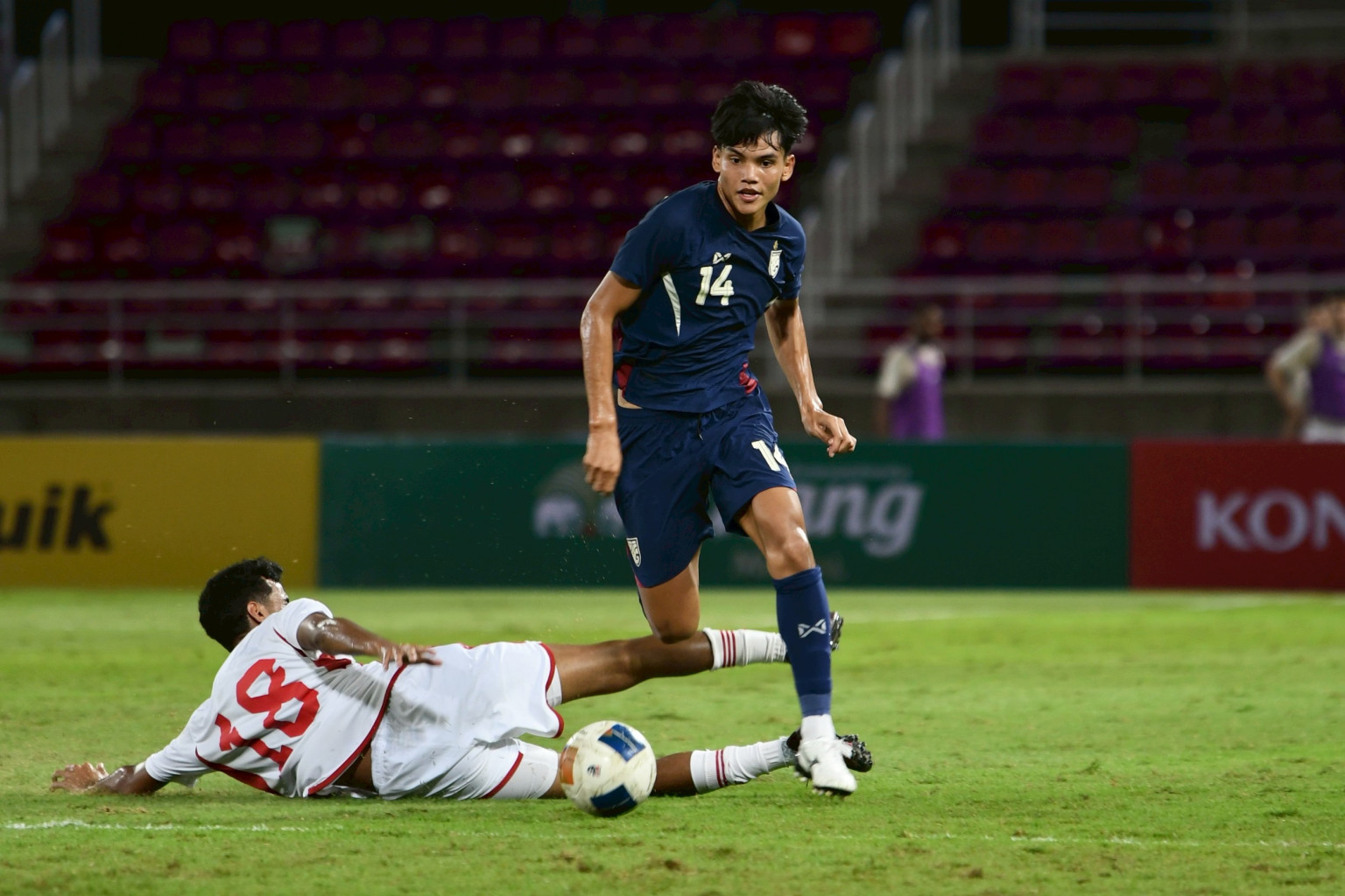 ครึ่งหลังทีมชาติไทย U23 ส่ง นรากรณ์ แก่งกระโทก, ธีร์กวิน จันทร์ศรี และ ธนาวุฒิ โพธิ์ชัย ลงมาแทน ปฏิภาณชัย โพธิ์เทพ, พลเอก มณีกร และ ธนกฤต ละออไขย์