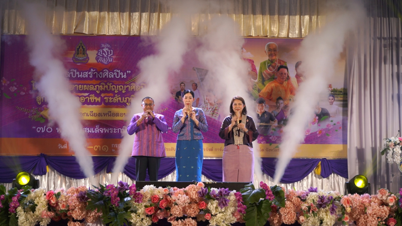 ด้านนางสาวพลอย ธนิกุล ผู้ช่วยรัฐมนตรีประจำกระทรวงวัฒนธรรม ประธานในพิธี กล่าวเปิดงานว่า "โครงการนี้จัดขึ้นเพื่อเฉลิมพระเกียรติสมเด็จพระกนิษฐาธิราชเจ้า กรมสมเด็จพระเทพรัตนราชสุดาฯ สยามบรมราชกุมารี ในโอกาสทรงเจริญพระชนมายุ 70 พรรษา และถือเป็นนโยบายสำคัญของกระทรวงวัฒนธรรมในการนำทุนทางวัฒนธรรมมาสร้างมูลค่าเพิ่มทางเศรษฐกิจ การมีศิลปินแห่งชาติและผู้เชี่ยวชาญมาถ่ายทอดองค์ความรู้แบบตัวต่อตัว จะช่วยยกระดับทักษะฝีมือของผู้เข้าร่วมอบรม และส่งเสริมให้เกิดการสร้างสรรค์ผลงานศิลปะที่มีคุณภาพ สามารถแข่งขันในตลาดได้ ซึ่งจะช่วยขับเคลื่อนเศรษฐกิจสร้างสรรค์ของประเทศให้เติบโตอย่างยั่งยืน"