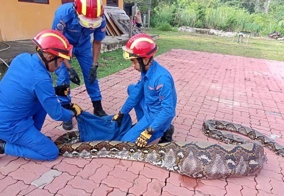 กองกำลังป้องกันพลเรือนเขตกูบังปาซู ทางตอนเหนือของรัฐเกดะห์ ได้รับรายงานว่ามีงูเหลือมขนาดใหญ่อยู่ในคอกแพะในของชาวเมืองกัมปุงกัวร์ บาตู ฮีตัม ซึ่งเจ้าหน้าที่กองป้องกันภัยฝ่ายพลเรือนจำนวน 4 นายรีบรุดไปยังที่เกิดเหตุทันที