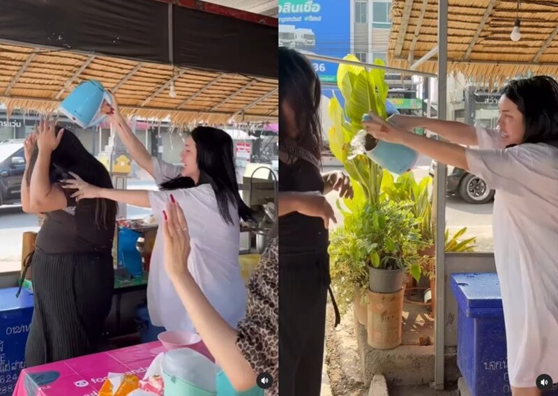 นารา ก็ร้องลั่นบอกว่าร้อน แล้วถูกสาดน้ำอีกรอบ ก่อน นารา จะหยิบกระติกไล่ฟาดคนมาราดน้ำ พร้อมถามว่า มึงทำได้ยังไง เขาเป็นคนเหมือนกัน