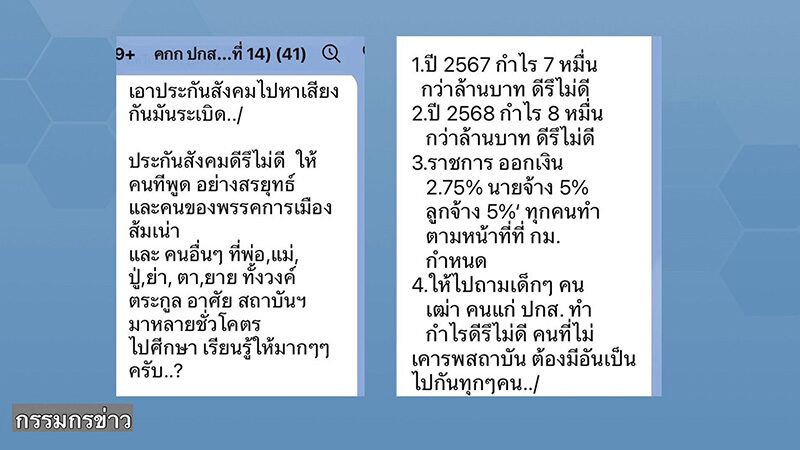 อ่านข่าวต้นฉบับได้ที่ : แชตหลุดอีก บอร์ดประกันสังคม ลั่นไม่เคารพสถาบัน ต้องมีอันเป็นไปทุกคน