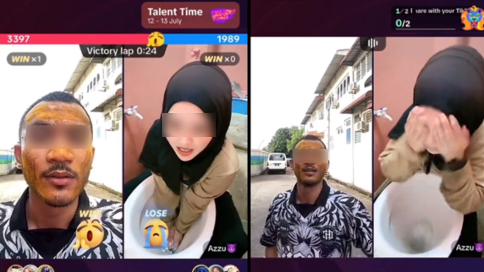 เรื่องราวถูกจุดประเด็นโดยผู้ใช้เฟซบุ๊ก Komandan Marco จากมาเลเซียได้โพสต์วิดีโอของติ๊กต็อกเกอร์ที่กำลังท้าทายกัน โดยผู้แพ้จะต้องล้างหน้าด้วยน้ำในโถส้วม ว่ากันว่าติ๊กต็อกเกอร์เหล่านี้ยังได้รับ "ของขวัญ" จากผู้ชมด้วย