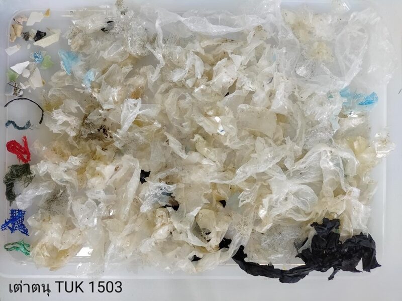 เต่าตนุ ตัววัยเด็ก กินขยะในทะเลเข้าไปนับได้ 158 ชิ้นทั้งพลาสติก-สายรัด-เส้นใยไฟเบอร์ น้ำหนักรวม 60 กรัม
