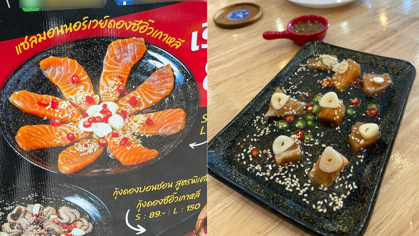 หลายคนเวลาสั่งอาหาร มักเลือกจากภาพประกอบเมนูเสมอ ลูกค้าย่อมคาดหวังว่าภาพประกอบเมนูกับอาหารที่ได้ต้องออกมาคล้ายคลึงกัน แต่หลายคนก็ประสบปัญหาได้อาหารไม่ตรงปก อย่างสาวคนนี้ ที่คาดหวังจะได้ทานแซลมอนคำโต แต่สิ่งที่ได้ตรงข้ามสิ้นเชิง!