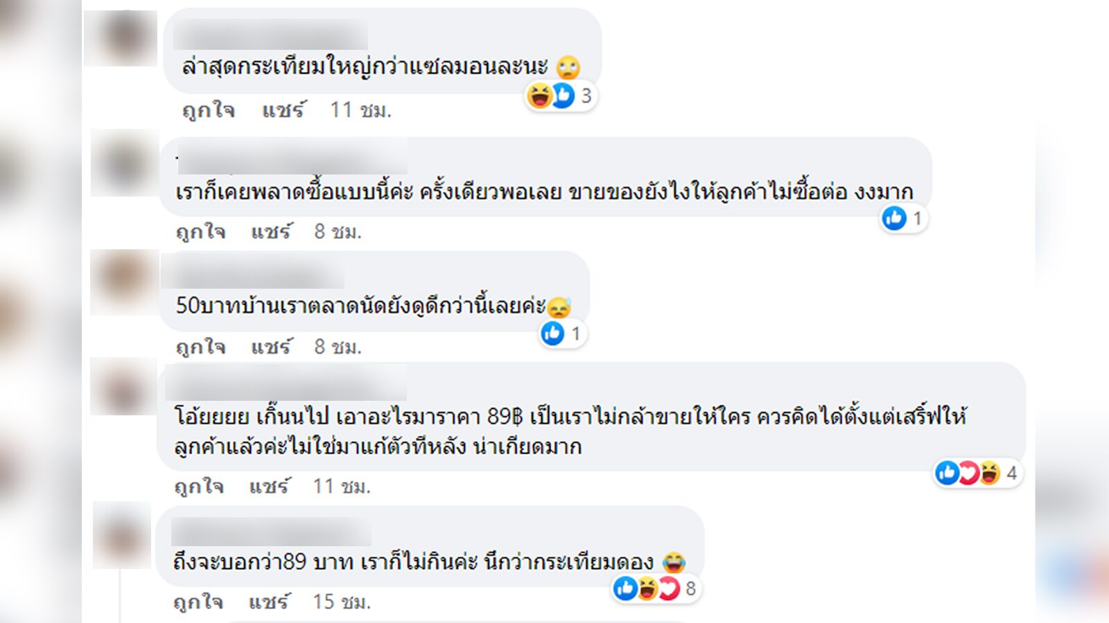 อย่างไรก็ตาม แม้ทางร้านจะออกมาชี้แจ้ง แต่ชาวเน็ตส่วนใหญ่ยังมองว่า ภาพประกอบเมนูยังคงสร้างความสับสนให้แก่ลูกค้า และถึงไซซ์เล็กจะมีราคา 89 บาท แต่ขนาดของแซลมอนที่ได้ก็ยังดูไม่เหมาะสมอยู่ดี