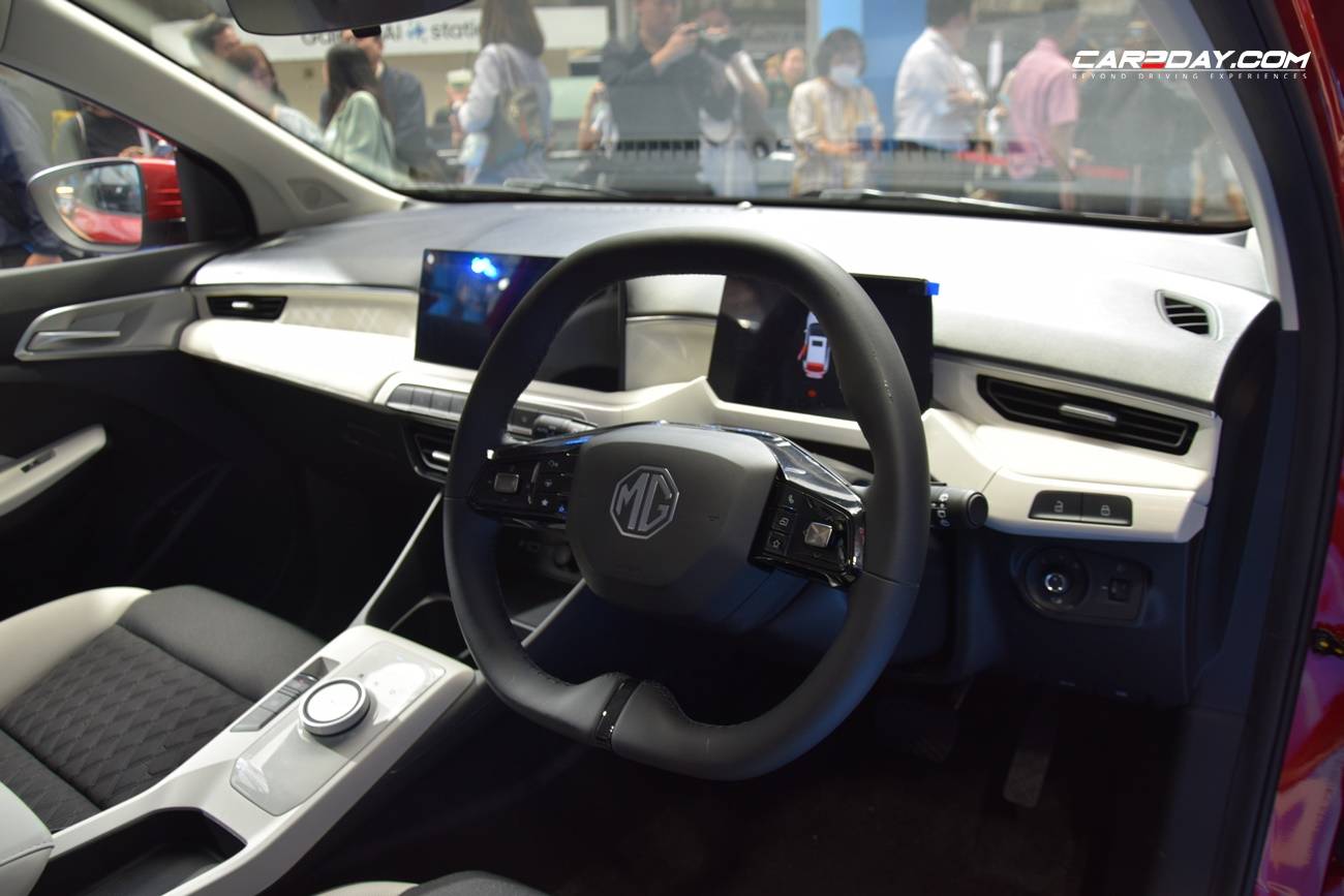 แผงคอนโซลหน้าดีไซน์ไฮเทค พวงมาลัยมัลติฟังก์ชันยกมาจาก MG4 Electric ติดตั้งจอคู่ประกอบด้วยมาตรวัดดิจิทัลขนาดใหญ่ 7 นิ้ว Digital Multi – Function Display มีจอสัมผัสขนาดใหญ่รองรับเชื่อมต่อแบบไร้สายทั้ง Apple CarPlay และ Android Auto ขนาด 10.25 นิ้ว มีช่องเสียบ USB ลำโพง 6 จุด
