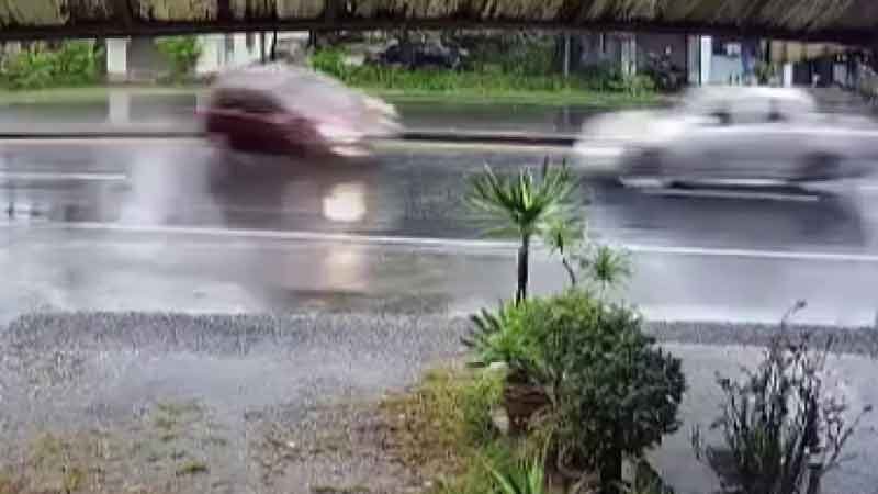 วันที่ 24 ก.พ.2568 ที่ถนนสาย 401 เส้นทางนคร-ท่าศาลา บ้านปากพยิง ต.ปากพูน อ.เมือง จ.นครศรีธรรมราช ภาพจากกล้องวงจรปิดจับภาพขณะฝนกำลังตกอย่างหนักและเกิดอุบัติเหตุรถยนต์เก๋งสีแดงเหินข้ามเกาะกลางถนนพุ่งชนประสานงากับรถยนต์กระบะที่แล่นสวนทางมาอย่างรุนแรง เป็นเหตุให้ผู้ขับขี่เก๋งได้รับบาดเจ็บ