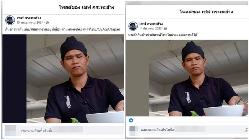 เพจดังขุดภาพ เชฟกระทะฮ้าง ชวนสงสัย หลายโพสต์ภาพเดียวกัน แต่ทำงานอยู่คนละประเทศ ชาวเน็ตแห่คอมเมนต์ รู้สึกในภาพมีอะไรแปลกๆ