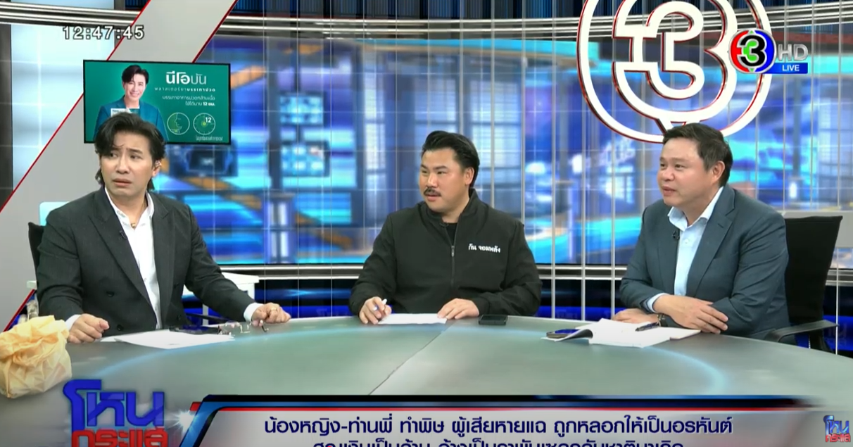 เมื่อวันที่ 21 ก.พ.68 รายการโหนกระแส ดำเนินรายการโดย หนุ่ม กรรชัย เชิญ คุณซาร่า ผู้เสียหายที่อ้างว่าถูกน้องหญิงและท่านพี่มารักษาอาการป่วย พร้อมเข้ามาอยู่ภายในบ้าน โดยมี กัน จอมพลัง และทนายแก้ว ร่วมรับฟัง
