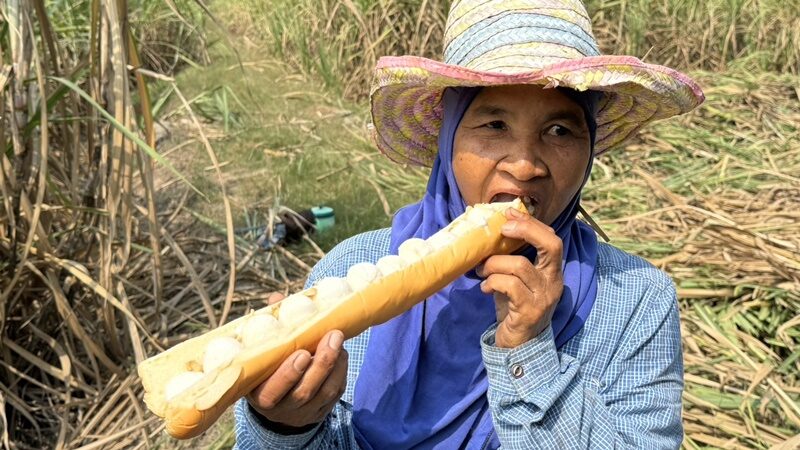 นางปราณี กล่าวว่า ตนขายมา 2 ปีแล้ว ขายได้วันละ 2 ปั่น (1 ถังใหญ่) เริ่มต้นที่ราคา 5 บาท 10 บาท และ 20 บาท โดยไฮไลท์สำคัญคือ ไอศกรีมกะมิตักยาวเท่าศอก ที่ยาวเท่าศอกและมีลูกไอศกรีมตักถึง 12 ลูกในขนมปังใส่ข้าวเหนียวและโรยด้วยถั่ว ยิ่งอากาศร้อนๆ แบบนี้ก็มีคนให้ความสนใจมาก ตั้งแต่ตนถูกถ่ายคลิปนำไปลงโซเชียลก็มีคนโทรให้ไปขายถึงบ้าน จนกระทั่งขายในไร่อ้อย